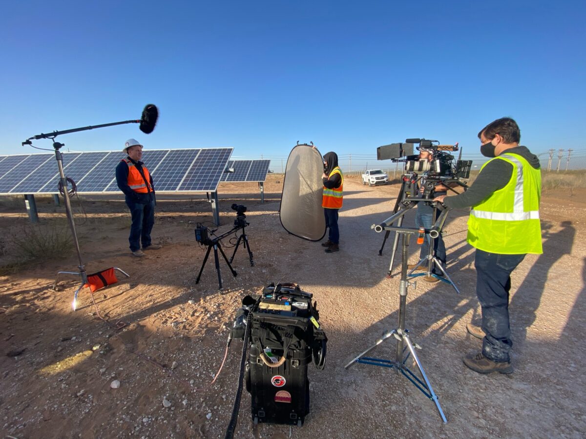 Create a promotional video that demonstrates 174 Power Global’s commitment to solar projects in Texas and across the US. Conduct pre-interviews with the landowners who initiated the project and research the site for visual opportunities.